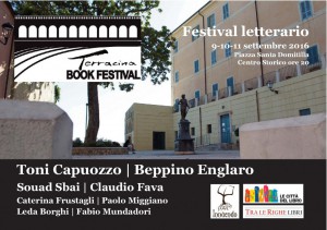 Il Terracina Book Festival, che fa parte degli eventi delle Città del libro, è ideato da Massimo Lerose e Andrea Giannasi, che si svolge in Piazza Santa Domitilla nel centro storico di Terracina. Tra l’Appia antica, la Cattedrale, i resti delle antiche vestigia dell’impero romano si tiene il festival con contaminazioni letterarie, poetiche, cinematografiche e tanti scrittori.