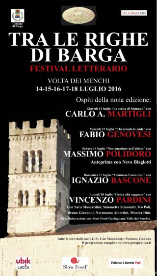 Si apre la nona edizione del festival letterario “Tra le righe di Barga” organizzato da Tra le righe libri e Prospektiva, in collaborazione con il comune di Barga, ProLoco, Slow Food.