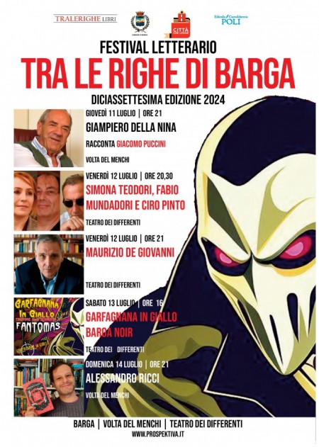 Saranno Maurizio De Giovanni, Alessandro Ricci, Giampiero Della Nina e le autrici e gli autori del giallo e del noir, gli ospiti della diciassettesima edizione del festival Tralerighe di Barga 2024.